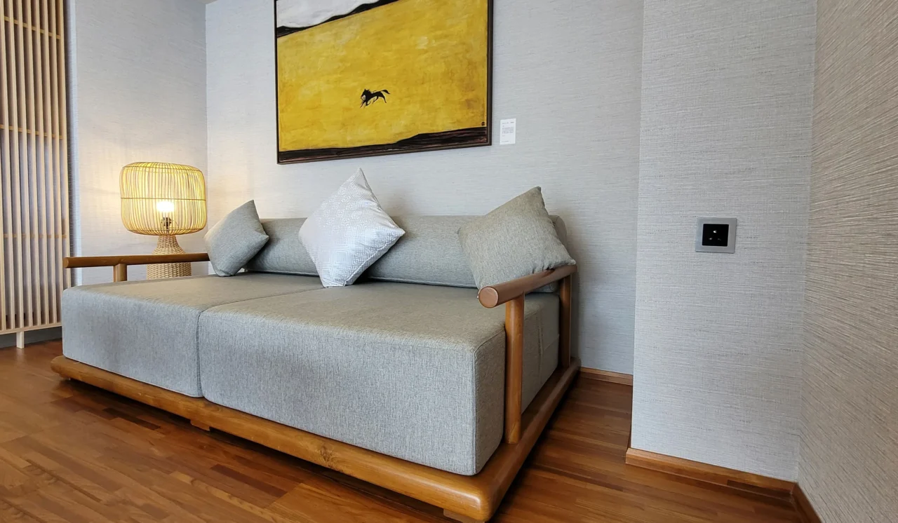 柚木主結構提供扎實支撐,搭配高密度坐墊與可拆式布套,機能與美感兼備