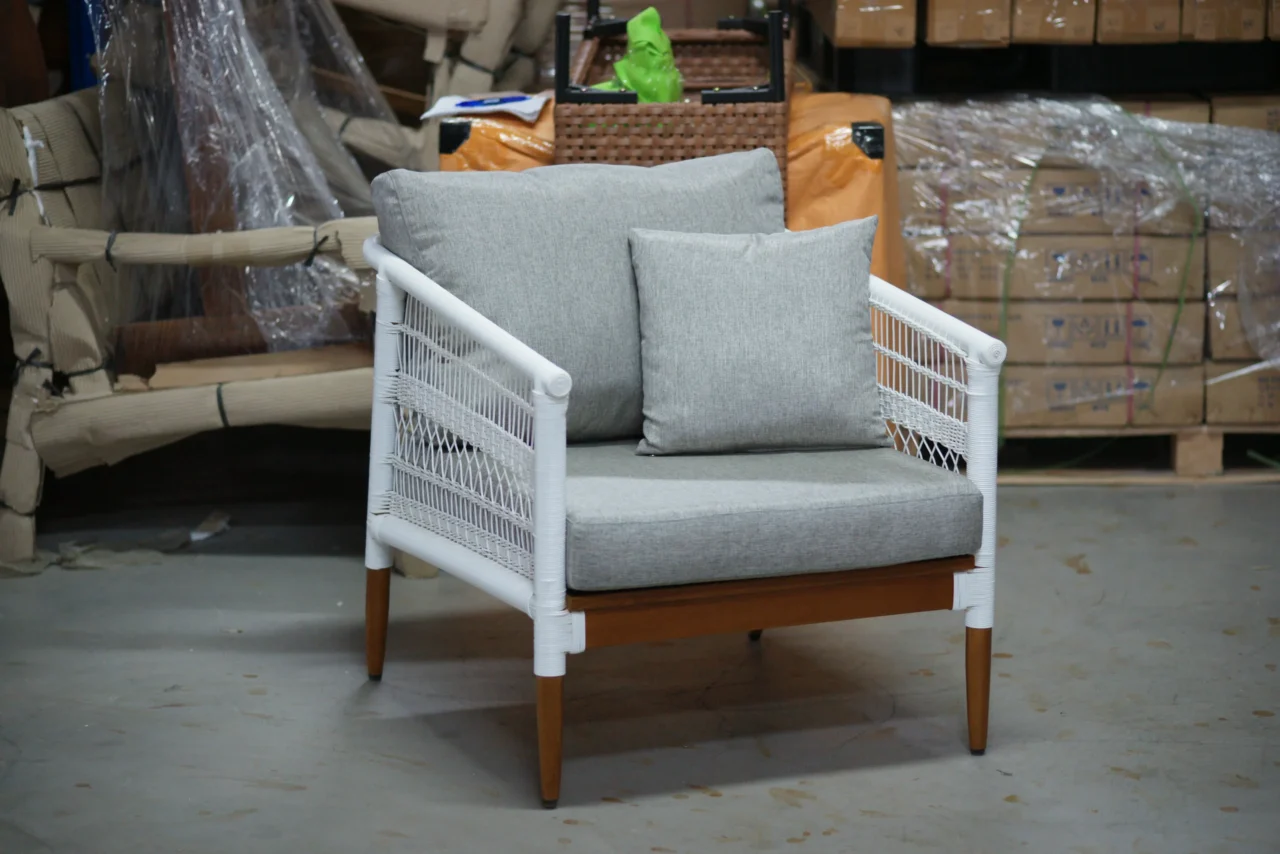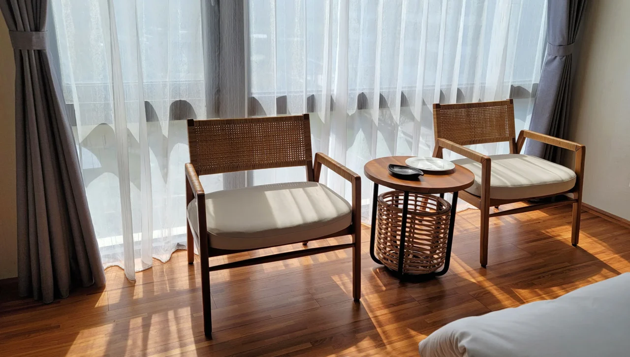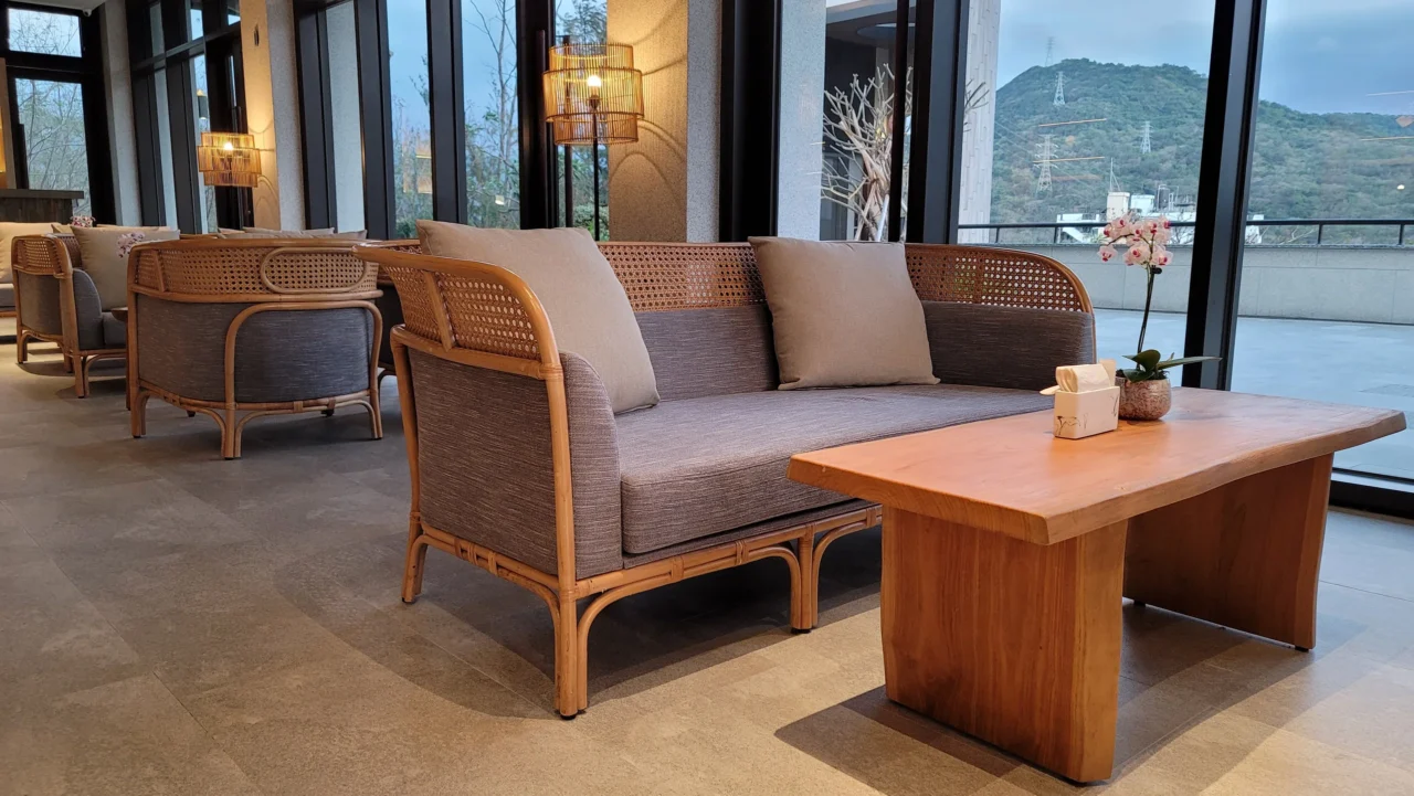 柚木 × 防潑水坐墊 × 飯店耐候規格
