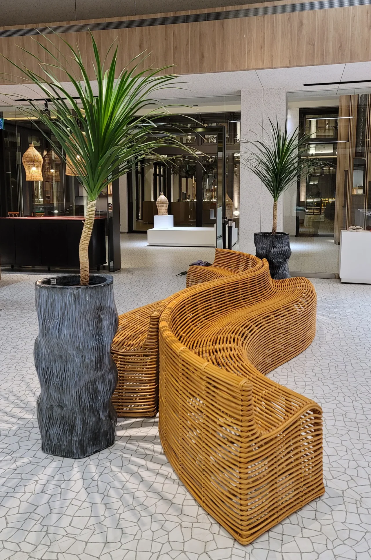 一進入大廳,這張 S 型藤編凳就吸引所有目光