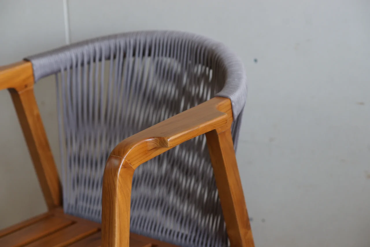 靠背與扶手均採柔性繩索交錯,坐感包覆但不壓迫,透氣度極高