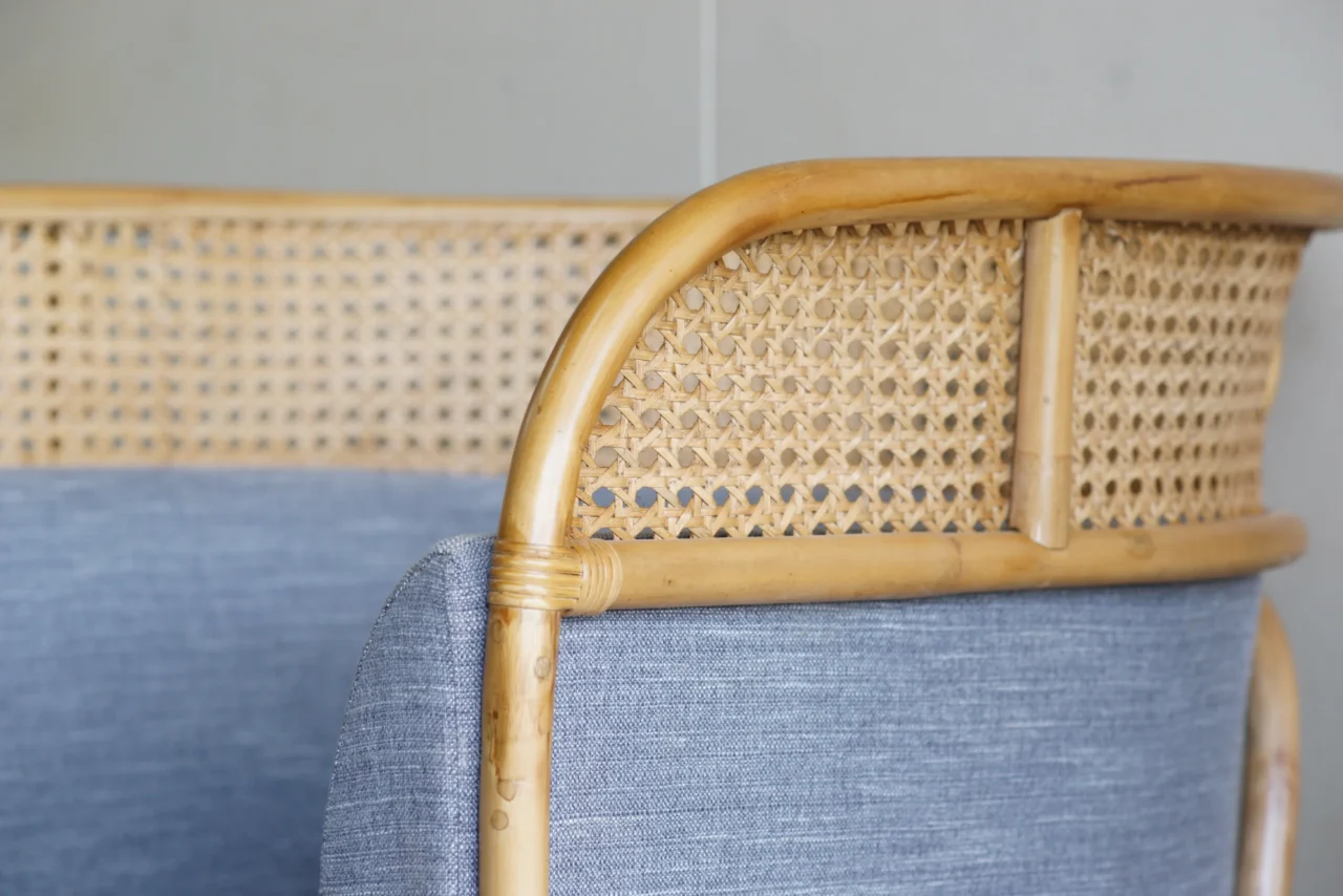 手工藤條完整包覆靠背與側板,形成舒適的包圍感