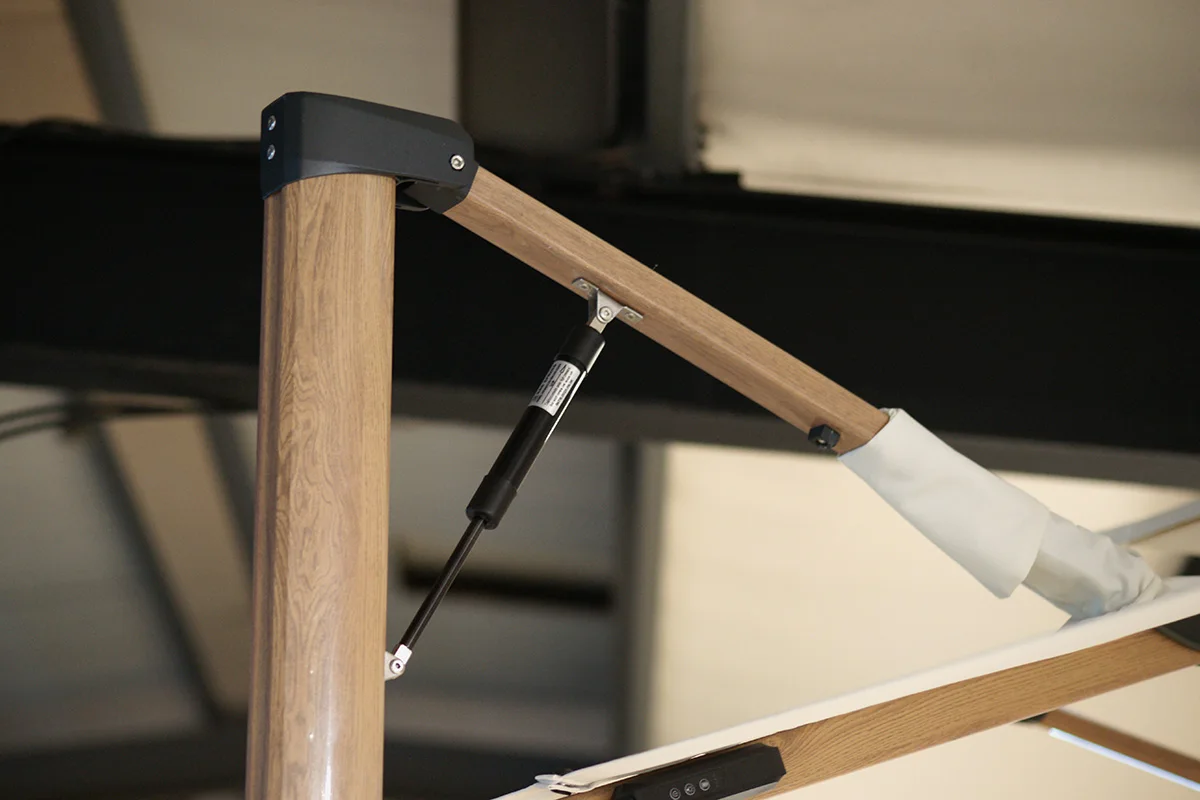 特殊超粗10cm鋁合金中柱,經典木紋烤漆外型自然典雅,結合高規格液壓支撐系統,開合順暢省力