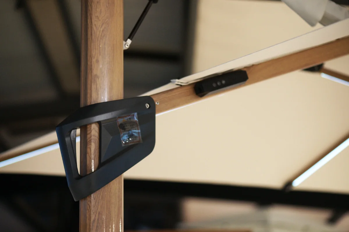 配備搖桿裝置,輕鬆調整遮陽角度,無需移動傘座,即可根據日照變化自由旋轉,全方位的遮陽效果