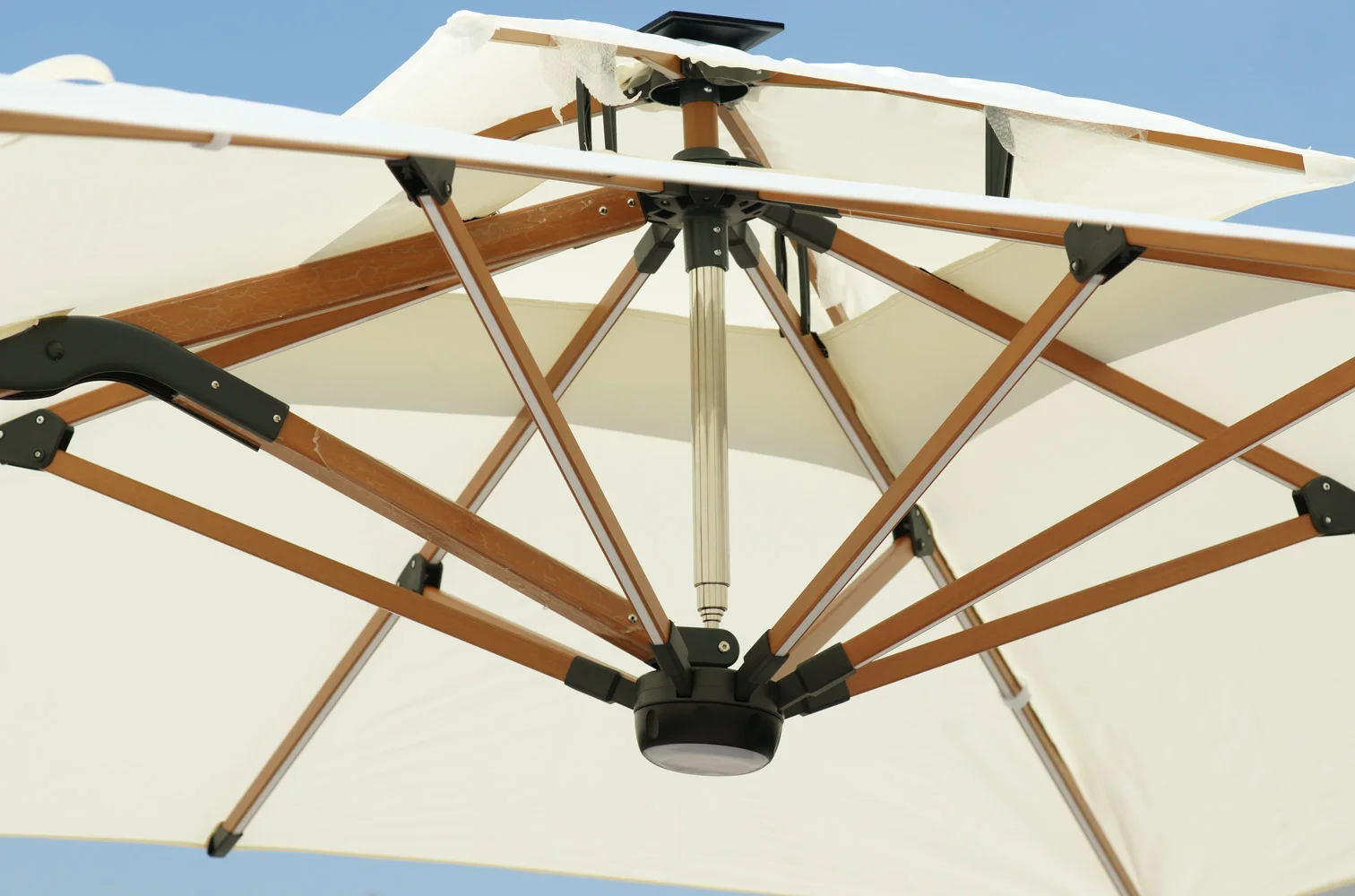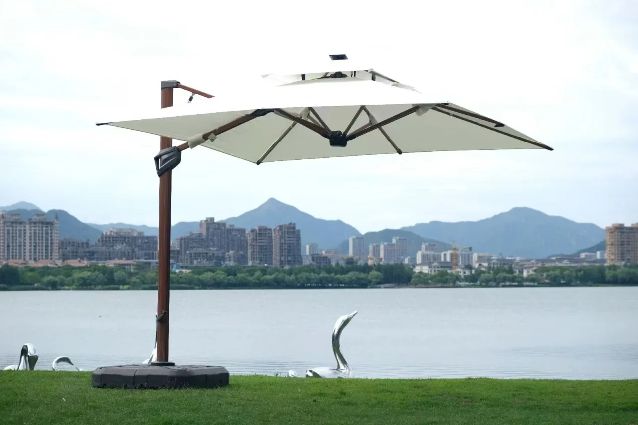 配備腳踏旋轉基座,輕鬆調整遮陽角度,無需移動傘座,即可根據日照變化自由旋轉,全方位的遮陽效果