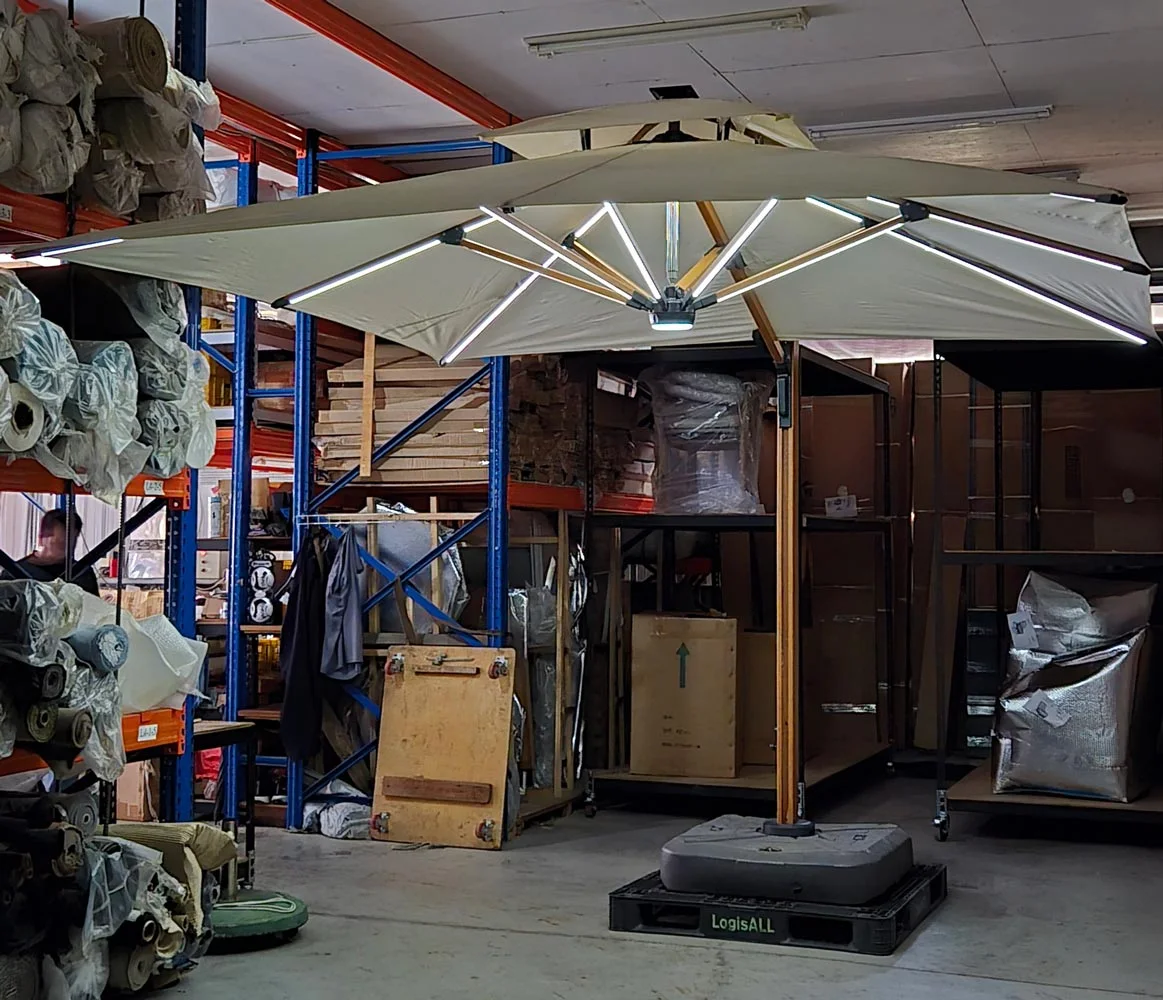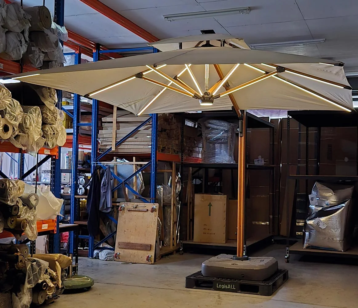 | 品號 | 299-MP-12230AL | 材質 | 鋁合金 / 防潑水布 | 尺寸 | W300*D300*H280 CM | 顏色 | 米白 / 墨綠 / 卡其 / 酒紅(可訂製顏色、Logo) | 其他 | 配冷暖光LED燈條/行動電池,傘座另購,訂製商品價格請洽業務