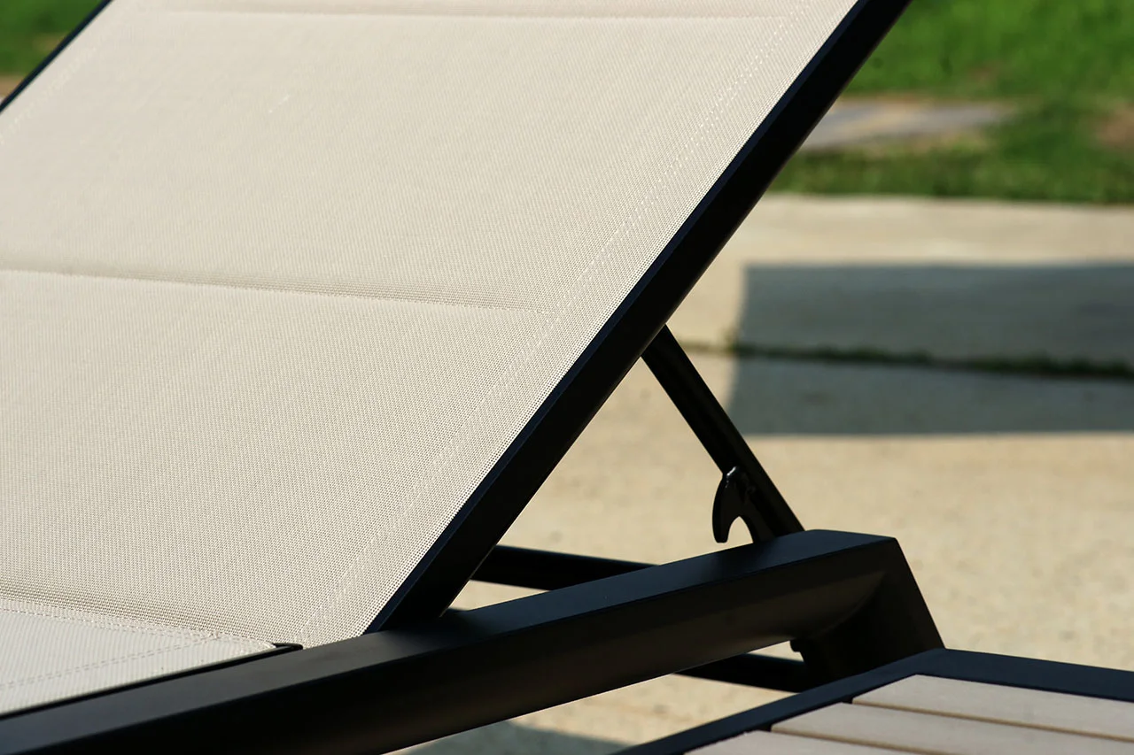 特斯林網布具極佳的透氣性與卓越的排水功能,非常適合用於潮濕環境,與講求乾爽舒適的池畔躺椅與沙發椅