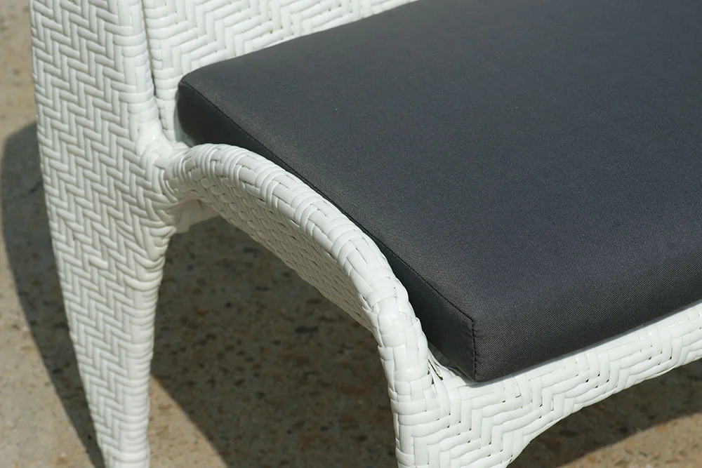 由聚乙烯高分子製成,模擬天然藤條的外觀,並具備優異的抗紫外線與防水特性,特別適合台灣潮濕氣候,可根據需求編織成各種設計,並提供多樣色彩客製選擇