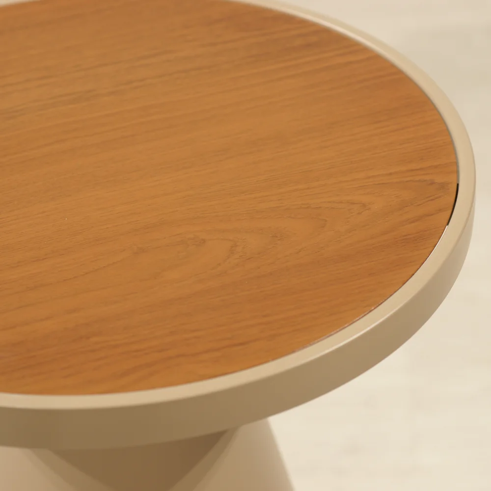 以沉穩色調為主,結合簡約線條的金屬骨架與溫潤木質烤漆,同色系的選用讓整體性更加完整,完美融入各式戶外空間
