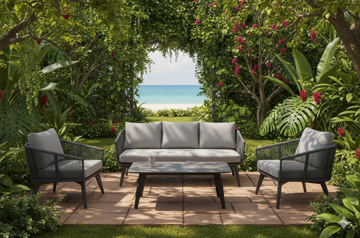 高強度鋁合金骨架,PE織繩垂直纏繞,抗曬防水,深灰色系設計完美融入各種空間