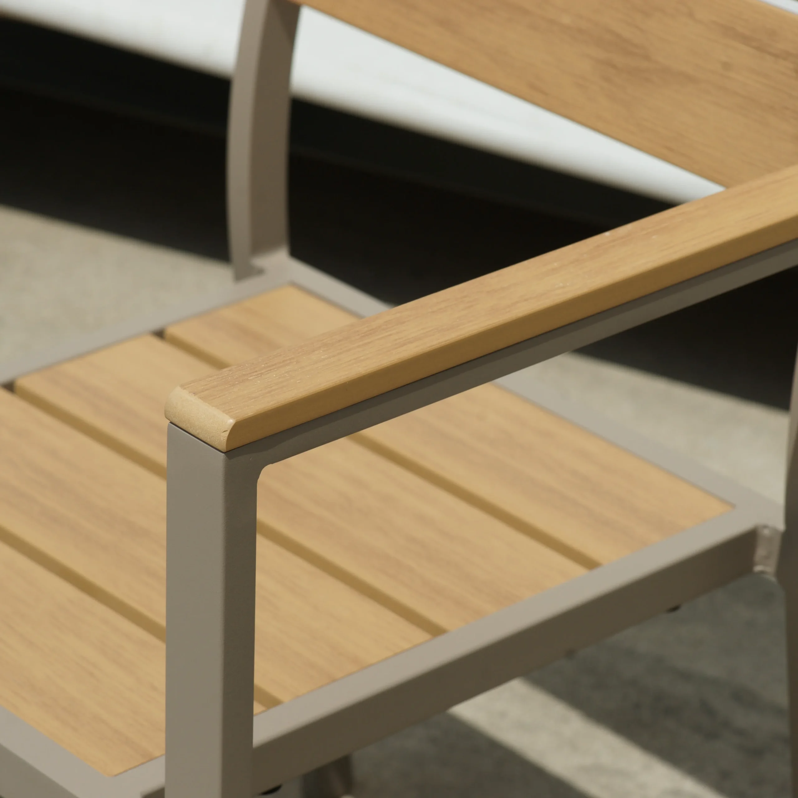 | 品號 | GR-1193-CE | 材質 | 鋁合金 / 塑木 | 尺寸 | W57*D52*H84 CM | 顏色 | 香檳色 / 咖啡色 | 其他 | 可客製塑木顏色,價格與庫存請聯繫業務確認