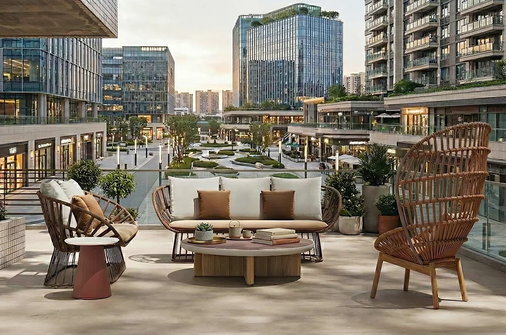 蒂爾達織繩沙發以其獨特的扇形織繩椅背設計為亮點,精緻的編織工藝,提供良好的透氣性,更在視覺上創造出輕盈通透的藝術美感,讓沙發成為戶外空間中一道引人注目的風景